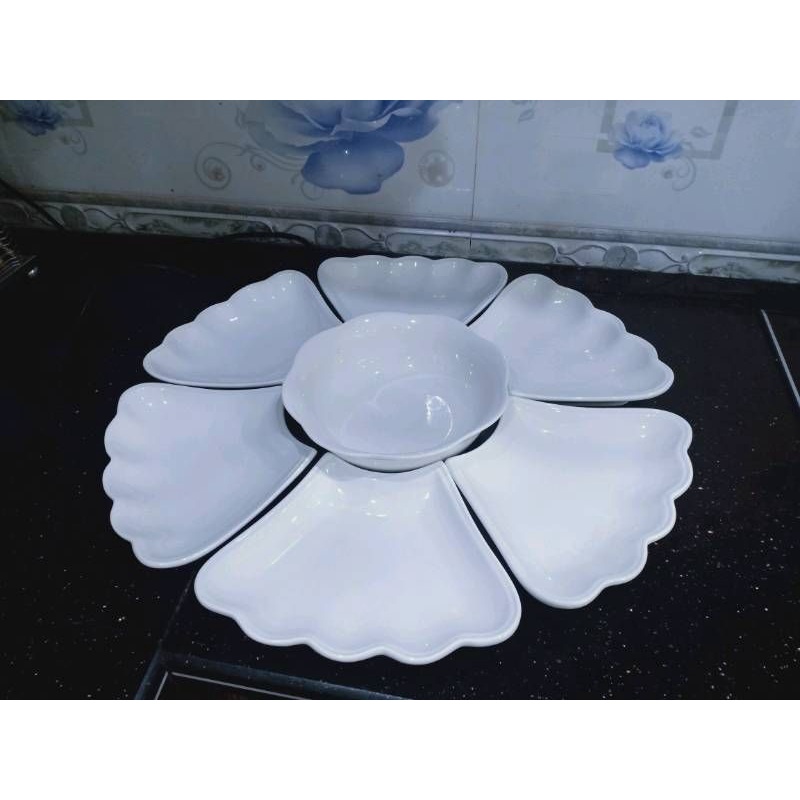 (SỨ TRẮNG TRONG)Bộ Bát Đĩa Minh châu(hoa mặt trời full set đĩa 1 tô + 6 đĩa to