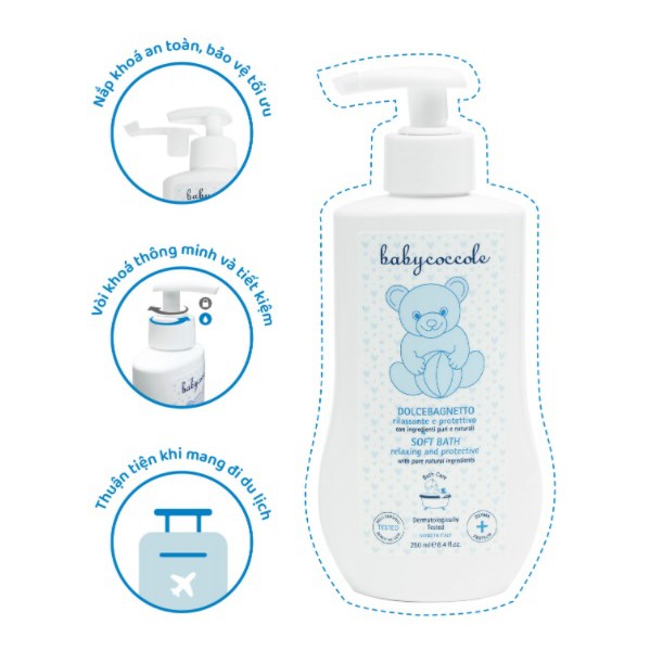 1. Sữa tắm giữ ẩm chiết xuất hoa sen Babycoccole 0M+: Một lựa chọn lý tưởng để giữ ẩm và làm mềm da, tạo cảm giác dễ chịu và thư giãn với mùi thơm dịu nhẹ của nước Italy. Sự tiện dụng của khóa vòi thông minh cùng bé trong mọi hành trình du lịch.