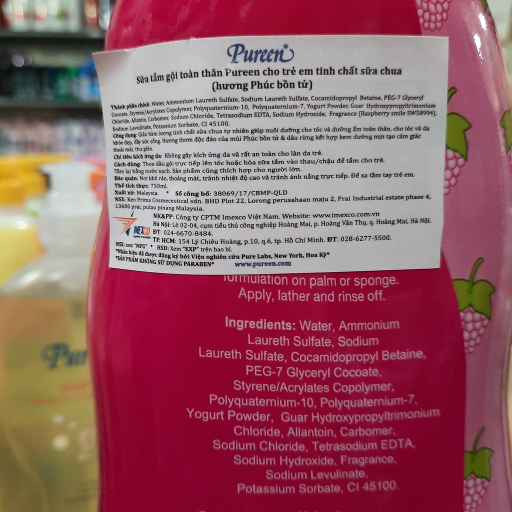 Giới thiệu Sữa tắm gội toàn thân Pureen 750ml hương phúc bồn tử