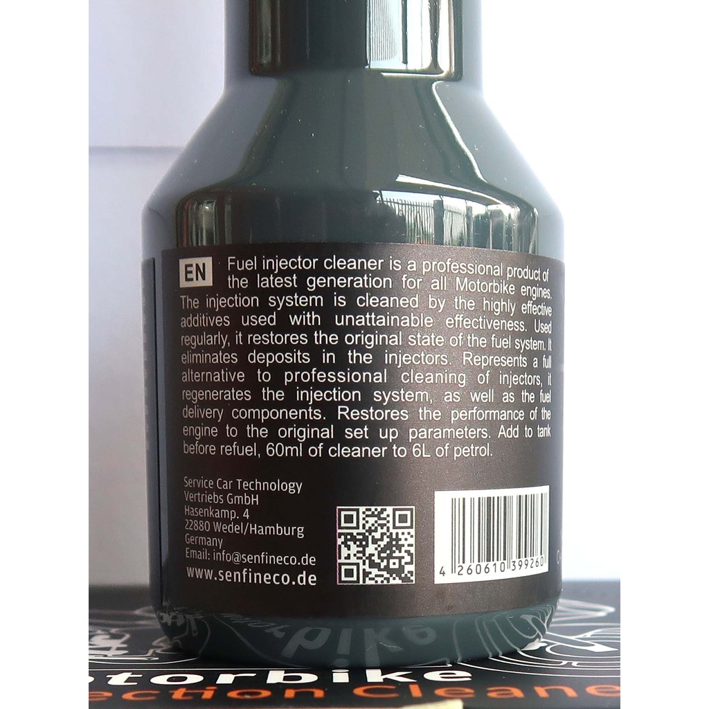 Motorbike Fuel Injection Cleaner Senfineco 60ml nhập khẩu ĐứcĐây là sản phẩm làm sạch kim phun xăng Fi, là sản phẩm chuyên nghiệp thuộc thế hệ mới nhất dành cho tất cả các động cơ xe máy Fi.