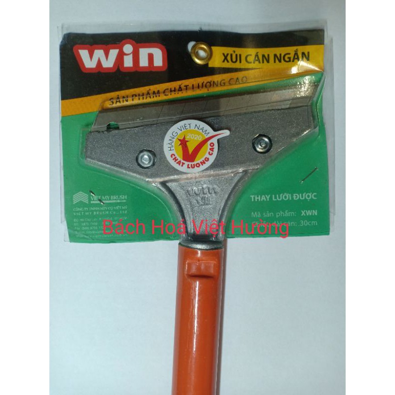 Cán nhựa, phần thân giữa bằng sắt chắc chắn.