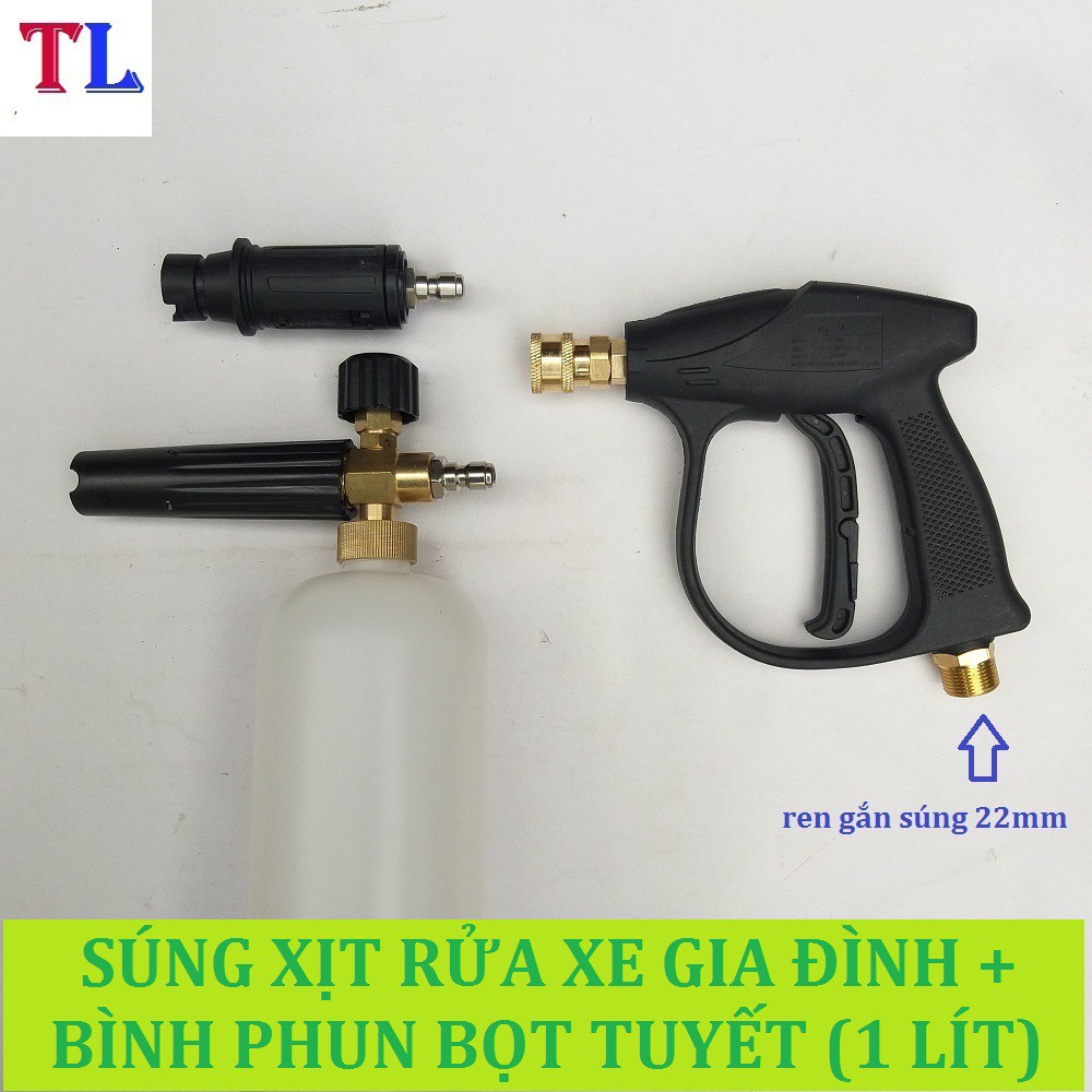Súng Áp Lực Cao Và Bình Phun Bọt Tuyết 1 lít (súng đen ren 22mm + bình 1 lít )