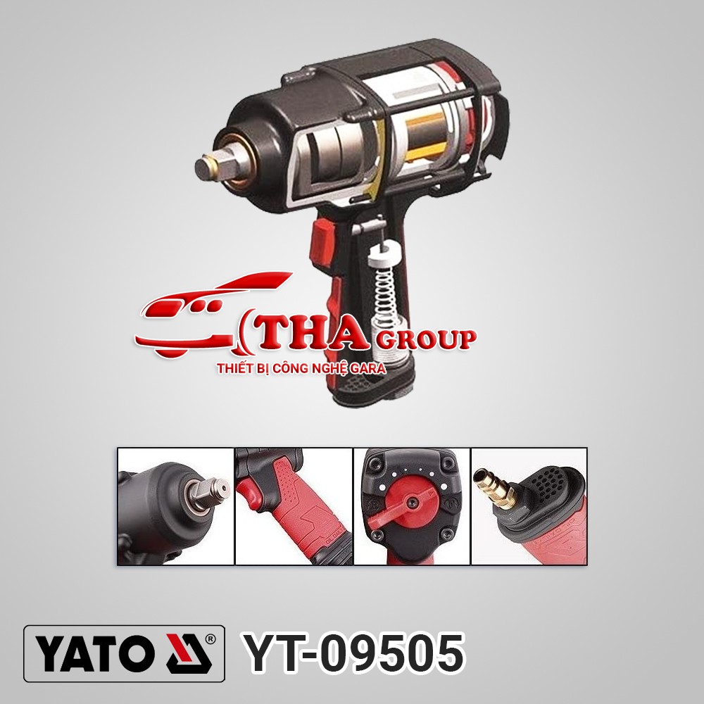 Súng bắn bu lông 2 búa Yato YT-09505 vận hành mạnh mẽ với lực siết tối đa 570NMSúng bắn bu lông khí nén Yato YT-09505 sử dụng loại đầu khẩu 1/2″ (khả năng vặn bu lông từ 12 – 24mm) phù hợp cho các công việc sửa chữa xe máy tại các tiệm trang bị hệ thống khí nén.