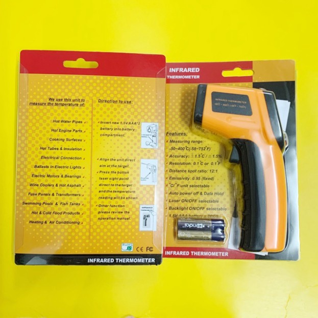 Nhà cửa & Đời sống > Dụng cụ & Thiết bị tiện ích > Dụng cụ > Khác || Súng bắn đo nhiệt độ INFRARED -50 : 400 độ C -58 : 752 độ FCòn hàng
