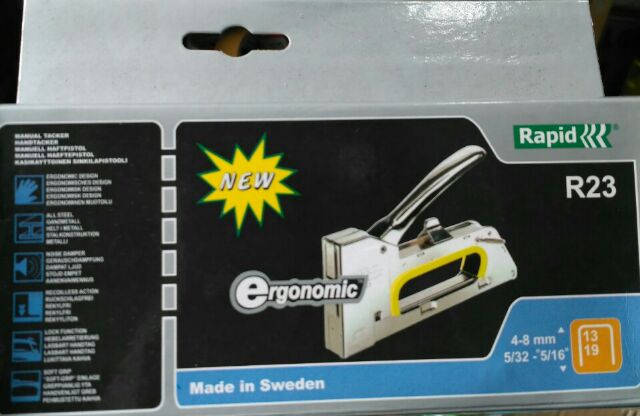 - Súng bắn gim gỗ đa năng Rapid R23 với thiết kế chắc chắn, khung inox tốt cho cảm giác tay cầm vô cùng tốt sẽ là bạn đồng hành lâu dài của mọi gia đình.- Dùng để bắn gim gỗ, ván ép, nhựa cứng, bọc nệm, và vô vàn các ứng dụng khác trong cuộc sống.