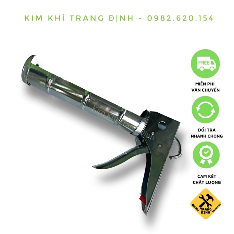 Súng Bắn Keo Silicone Inox Có Máng Đỡ Kèm Dao Cắt Vòi