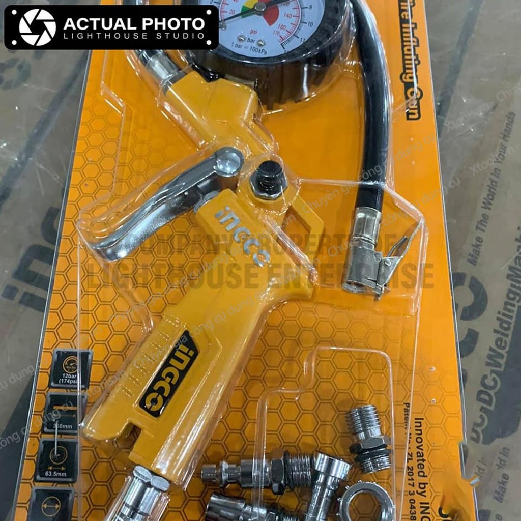 Nhà cửa & Đời sống > Dụng cụ & Thiết bị tiện ích > Dụng cụ > Dụng cụ đo lường || Súng bơm hơi tích hợp đồng hồ đo áp suất khí INGCO ATG0601 12bar bơm nén khí lốp xe đạp xe máy xe hơi hồ bơi nệm hơiCòn hàng