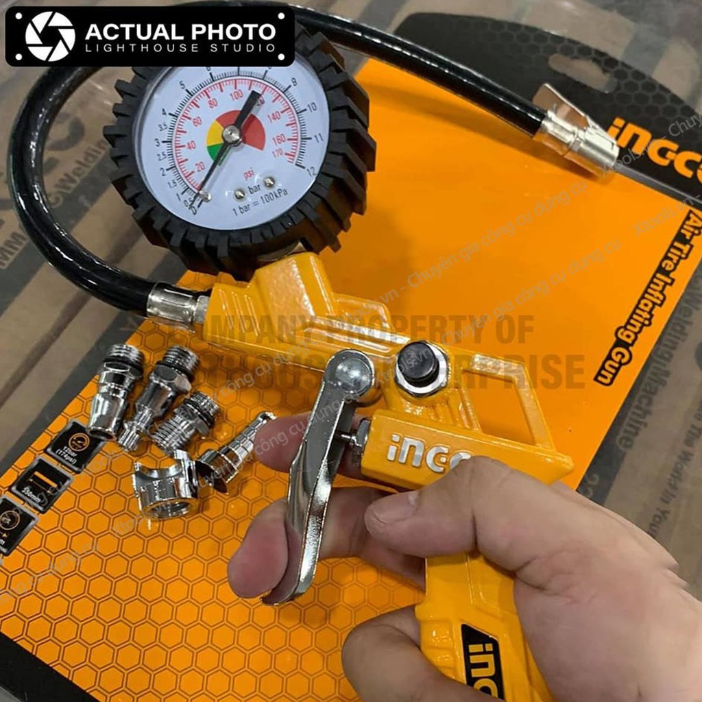 ✅Súng bơm hơi INGCO được thiết kế tích hợp cùng với đồng hồ đo áp suất giúp canh chỉnh được mức độ áp suất chính xác nhất cho lốp xe, nệm hợi, thuyền kayak,...