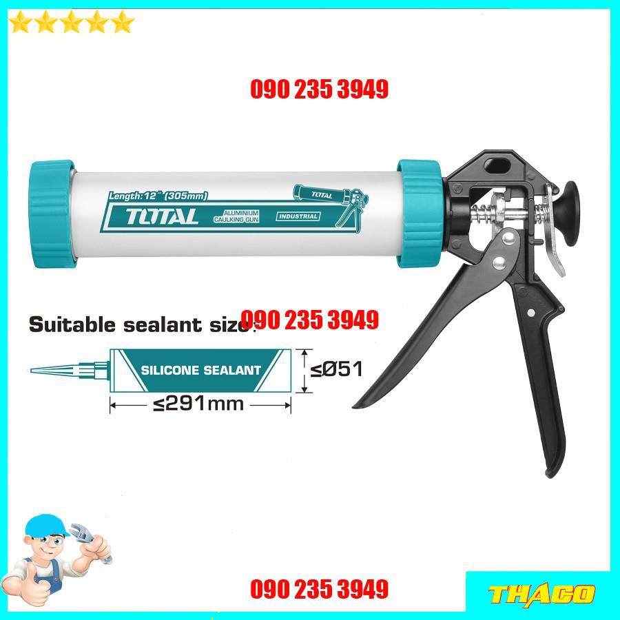 Súng bơm keo silicon thân nhôm Total Ingco dài 235mm 305mm 380mm đường kính 51mm 55mm thân dày chắc chắn 1234