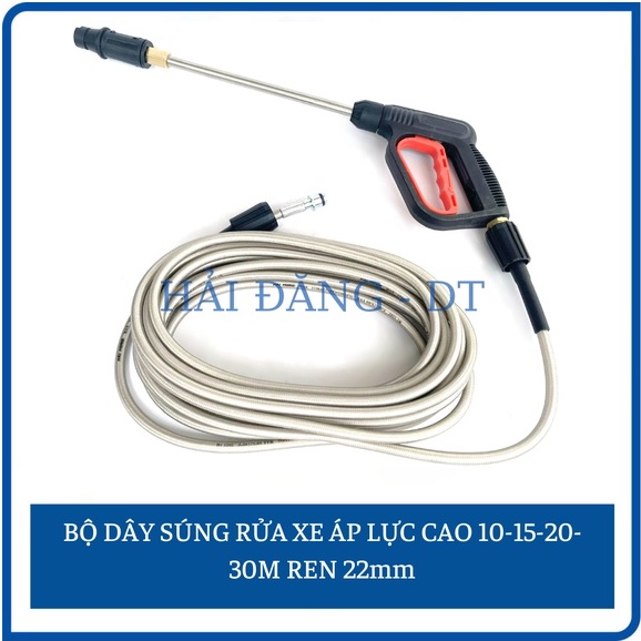 Bộ súng kèm dây xịt rửa xe áp lực cao 10, 15, 20, 30m ren 22mm kèm ống nối 30cm (Súng kiểu cò đỏ)