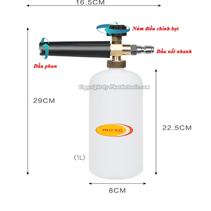 Súng Rửa Xe Phun Bọt Tuyết Cho Máy Rửa Xe Gia Đình có khả năng tạo bọt cực tốt,đầu phun của bình có thể chỉnh độ bao phủ,độ rộng,tăng giảm lượng bọt tùy theo nhu cầu.