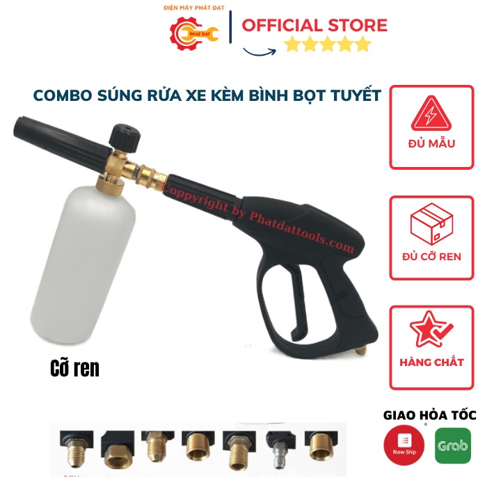 Súng Phun Bọt Tuyết Cho Máy Rửa Xe Gia Đình-Bình Phun Bọt Tuyết-Súng Xịt Rửa Xe