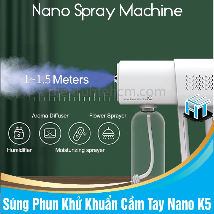 Súng Phun Khử Khuẩn Cầm Tay Nano K5Súng xịt khử khuẩn cầm tay Nano K5 sử dụng cơ chế khử trùng ở nhiệt độ phòng bình thường, không làm nóng như các máy phun truyền thống.
