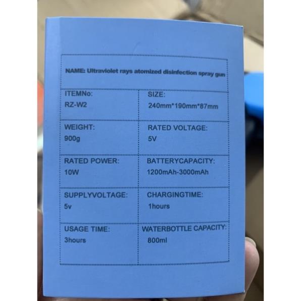 Súng phun khử khuẩn tia cực tím RZ-W2 800ml với thiết kế nhỏ gọn, rất tiện lợi cho việc mang đi xa, sử dụng trong phòng làm việc,…..- Kích cỡ: 240mm*190mm*87mm