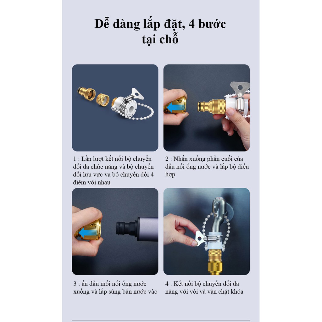 🍓 Bước 4: Kết nối bộ chuyển đổi đa năng với vòi và vặn chặt khóa