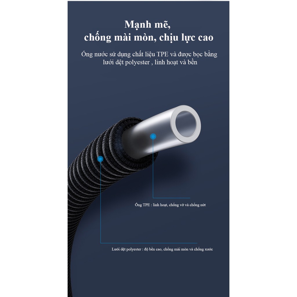 🍍 Ống nước sử dụng chất liệu TPE và được bọc bằng lưới dệt polyester, linh hoạt, bền