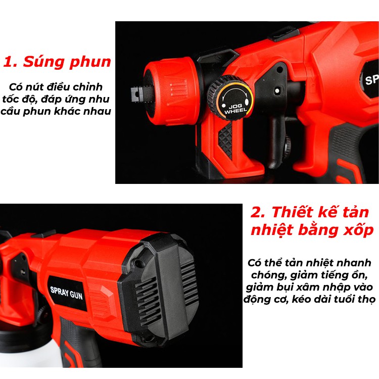 ✔️ Dễ dàng sử dụng trong việc sơn các bề mặt, dễ sử dụng, sử dụng nguồn 220v, có thể điều chỉnh tốc độ phun.
