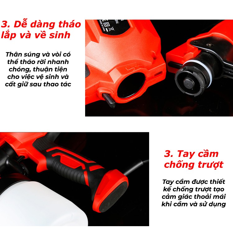 ✔️ Tiết kiệm sơn, dễ vận hành, sử dụng vật liệu nhựa đặc biệt, thân súng cực kỳ nhẹ, dài giúp các hoạt động không phải mệt mỏi.