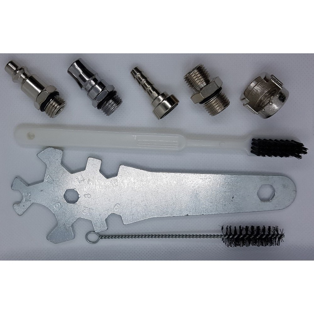 - Kèm đầu nối Châu Âu, đầu nối Hoa Kỳ, đầu nối Nitto và đầu nối Ý.