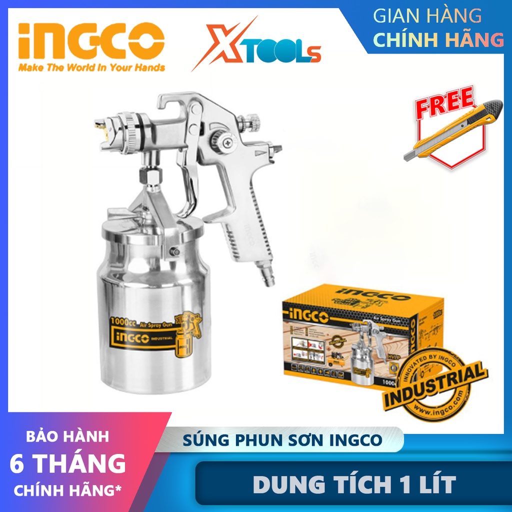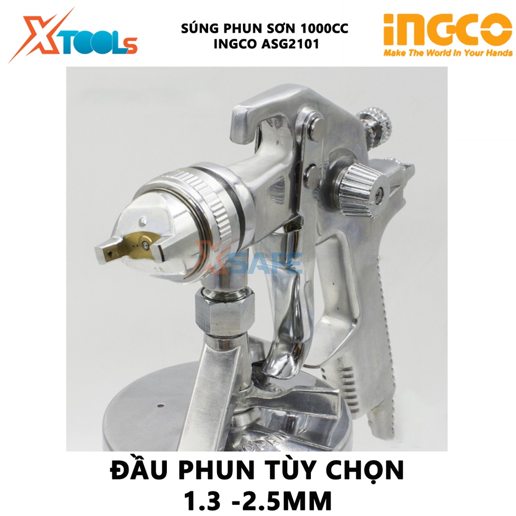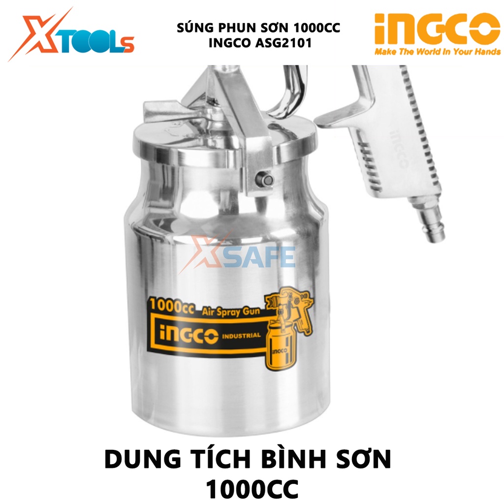 Súng phun sơn INGCO ASG2101 | máy phun sơn Đầu phun tiêu chuẩn 1.4mm, Dung tích bình sơn 1000cc phun sơn gỗ, sơn ô tô, n