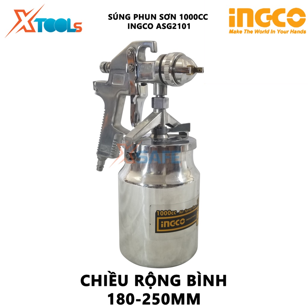 Giới thiệu Súng phun sơn INGCO ASG2101 | máy phun sơn Đầu phun tiêu chuẩn 1.4mm, Dung tích bình sơn 1000cc phun sơn gỗ, sơn ô tô, n