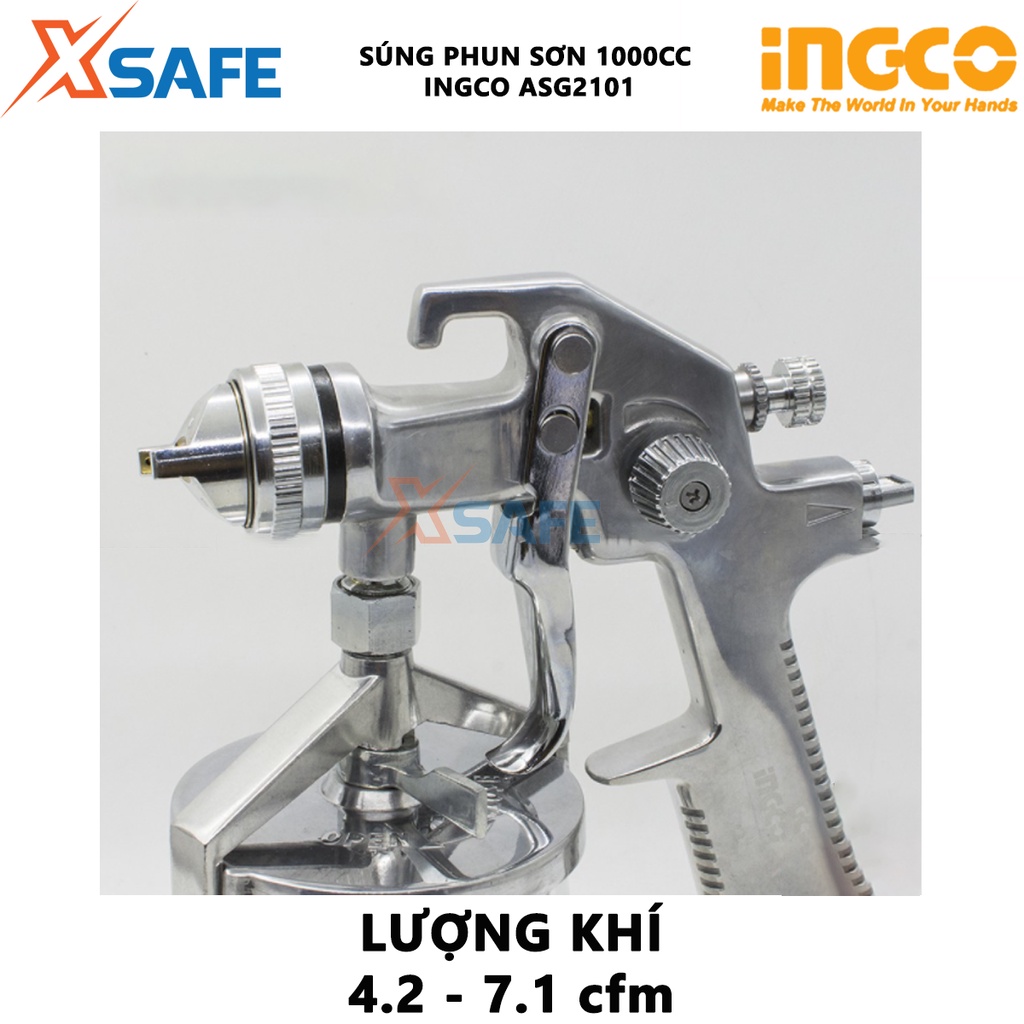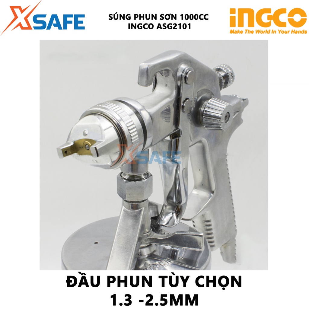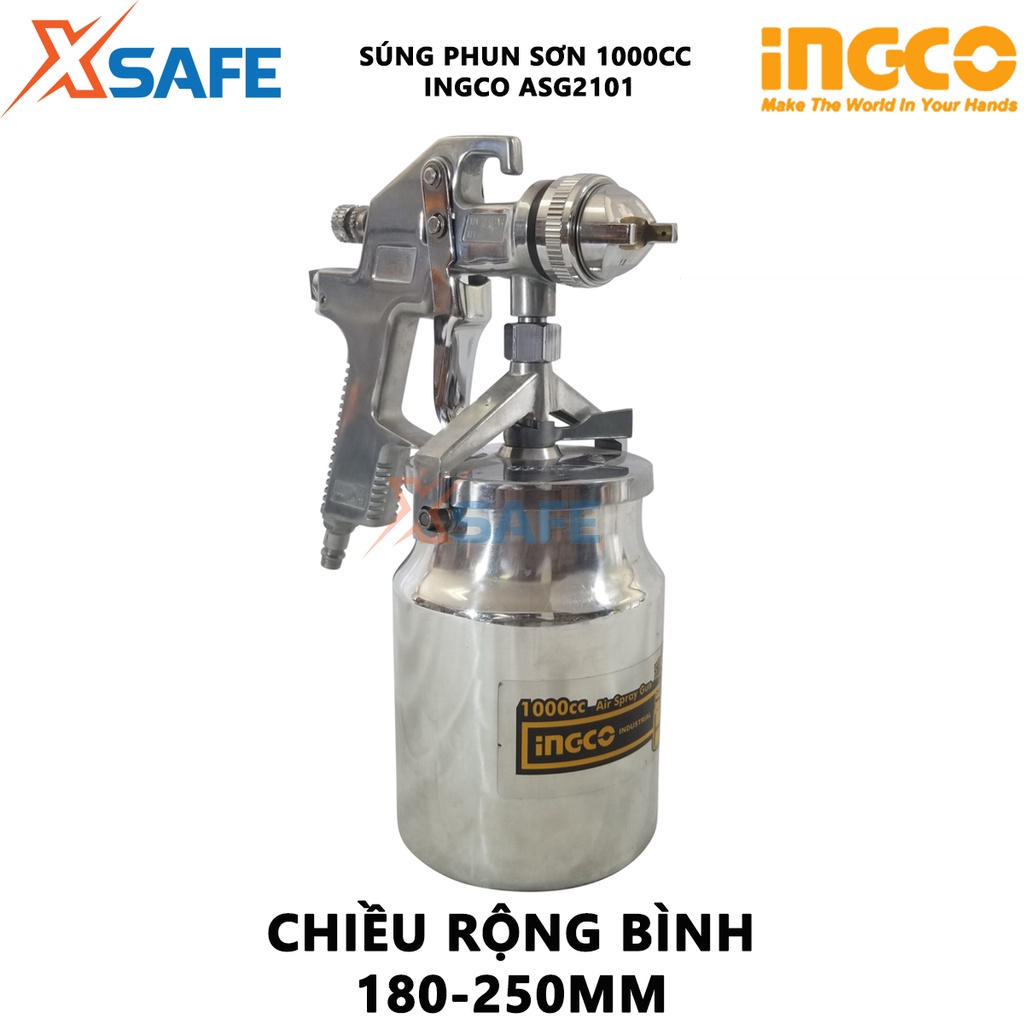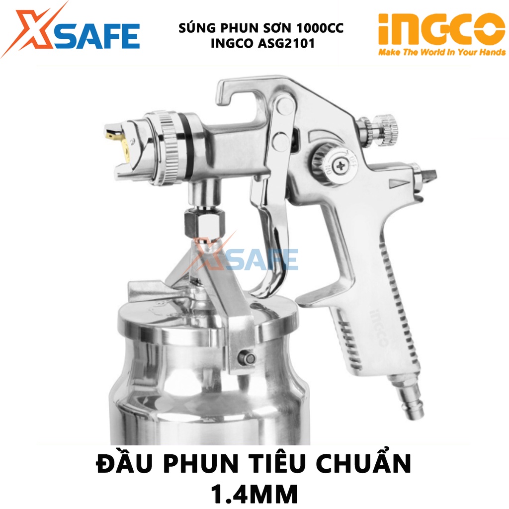 Giới thiệu Súng phun sơn INGCO ASG2101 Máy phun sơn đầu phun tiêu chuẩn 1.4mm, dung tích bình sơn 1000cc, đầu phun 1.3-2.5mm