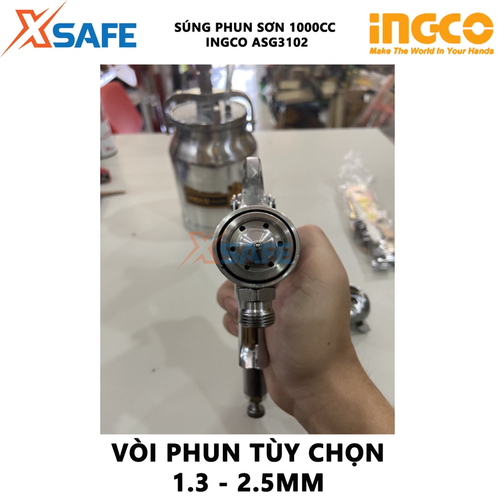 Giới thiệu Súng phun sơn INGCO ASG3102 Máy phun sơn vòi phun tiêu chuẩn 1.8mm Dung tích 1.0L Áp lực vận hành 3 - 4 bar - Chính hãng