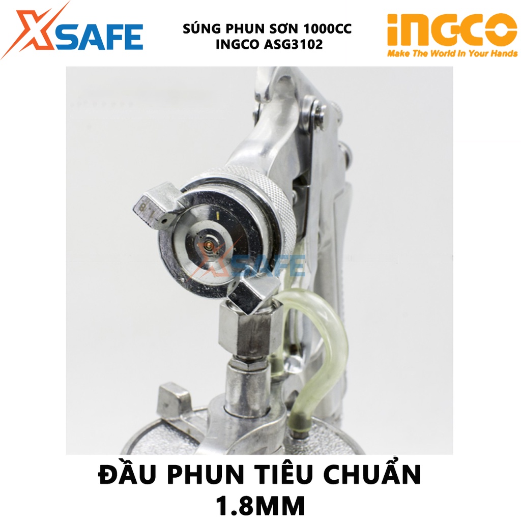 Súng phun sơn INGCO ASG3102 Máy phun sơn vòi phun tiêu chuẩn 1.8mm Dung tích 1.0L Áp lực vận hành 3 - 4 bar - Chính hãng