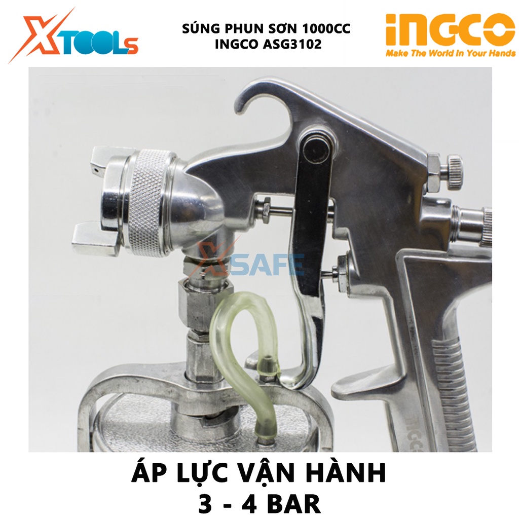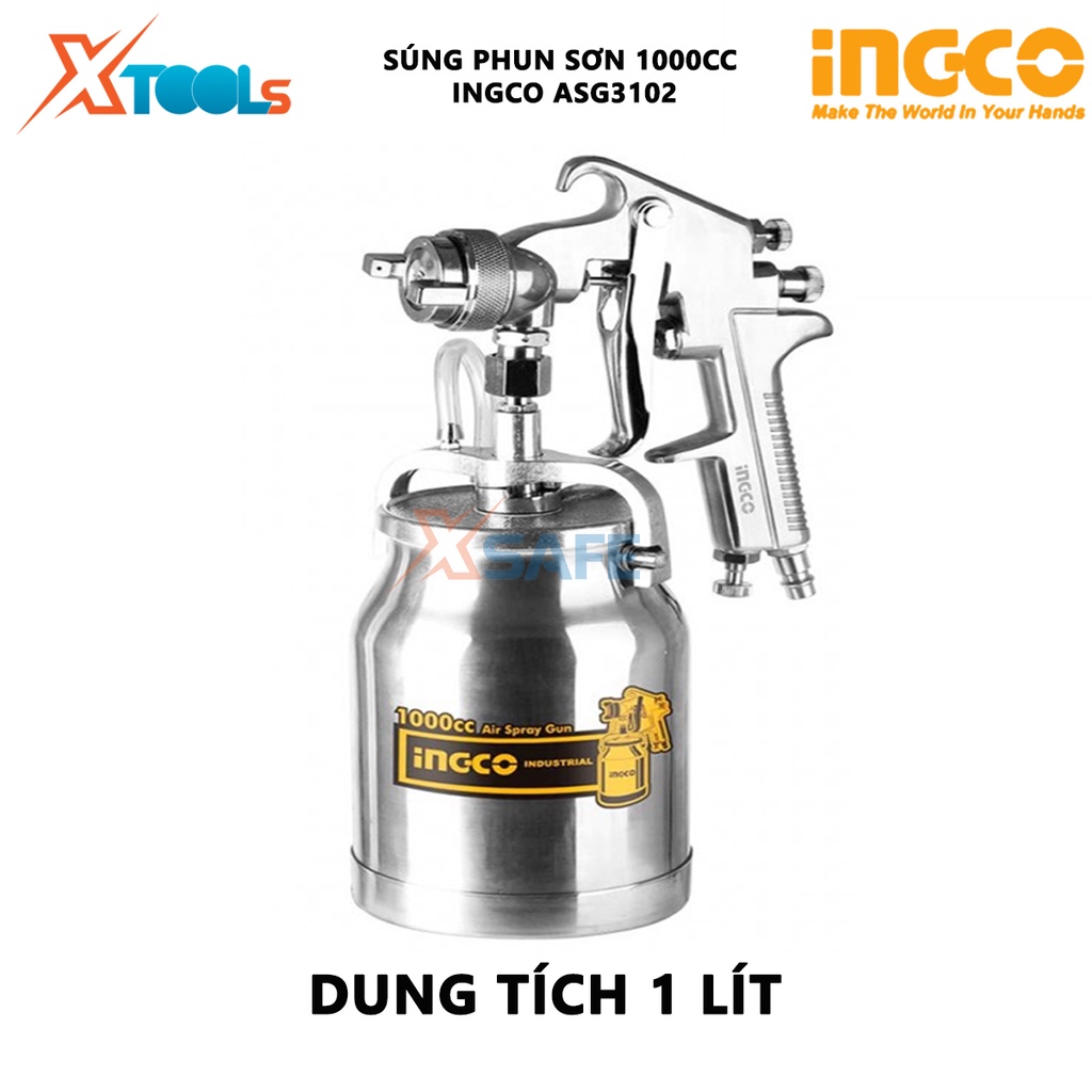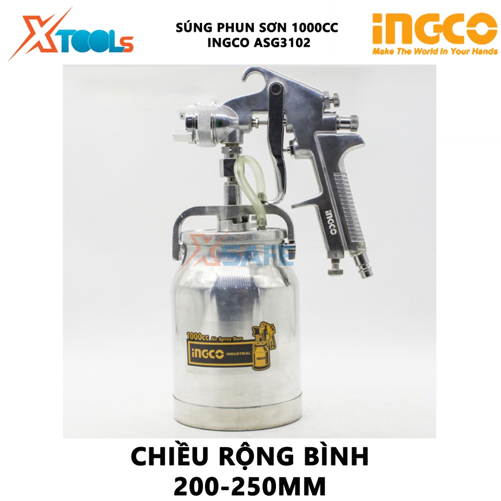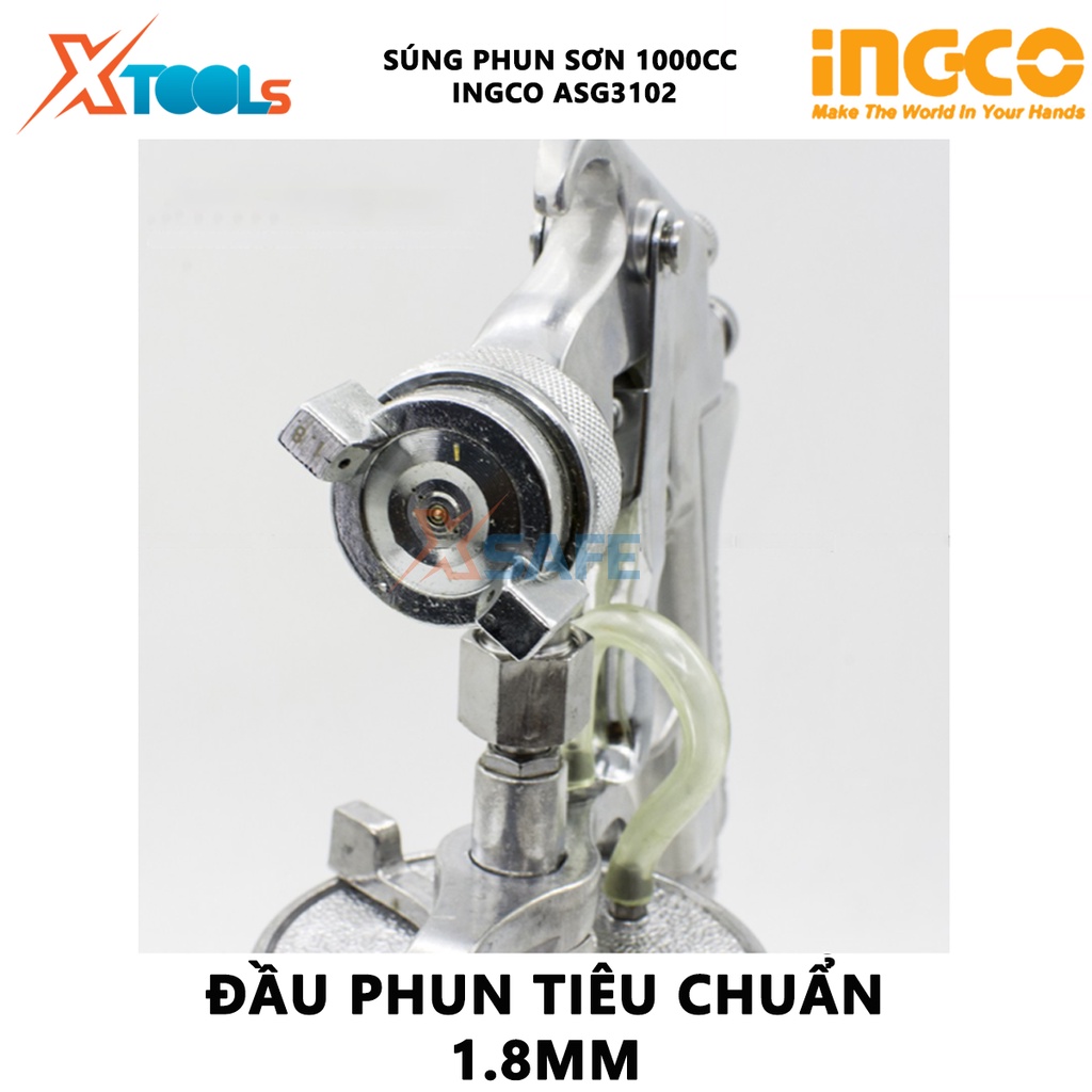 Súng phun sơn INGCO ASG3102 | máy phun sơn Vòi phun tiêu chuẩn 1.8mm, Dung tích 1.0L, Áp lực vận hành 3 - 4 bar phun sơn