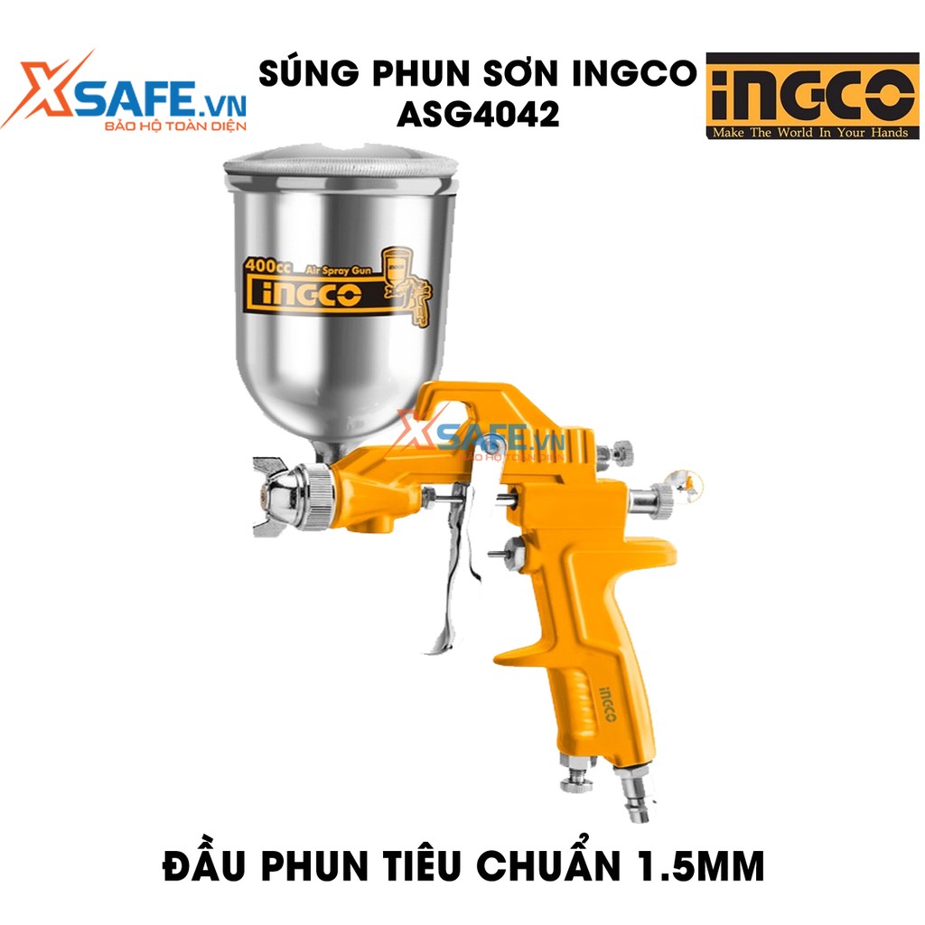 Súng phun sơn INGCO ASG4042 - Súng phun sơn đầu phun tiêu chuẩn 1.5mm, áp suất 3.0-4.0 bar, thể tích bình nhôm 400cc