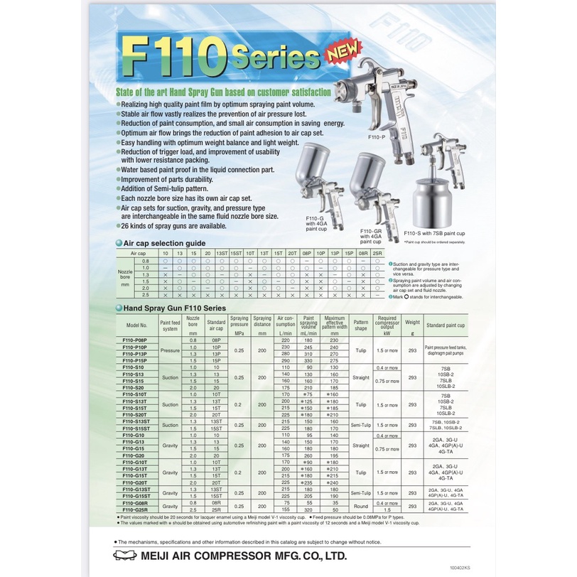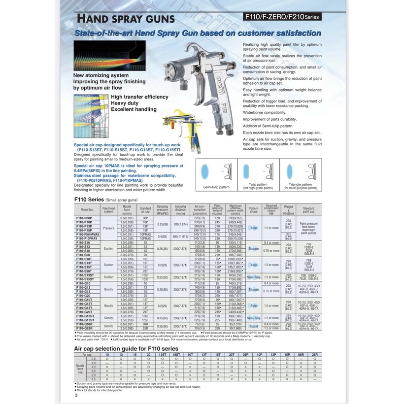 Giới thiệu Súng phun sơn Nhật Bản Meiji F110-G10T (1.0mm), F110-G13T (1.3mm), F110-G15T (1.5mm) Gồm cốc 4GD