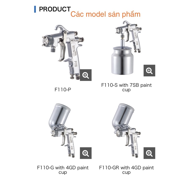 Ưu điểm súng phun sơn Nhật Bản Meiji F110- Đây là dòng súng cao cấp chuyên phục vụ cho ngành công nghiệp: Gỗ, Ô tô, Xe máy, Nội thất, Cơ khí,...