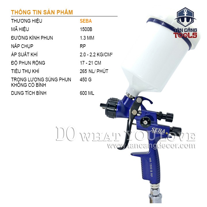 Súng Phun Sơn Seba 1500B 1.3 mm RP 600 cc* Mô Tả Sản Phẩm :