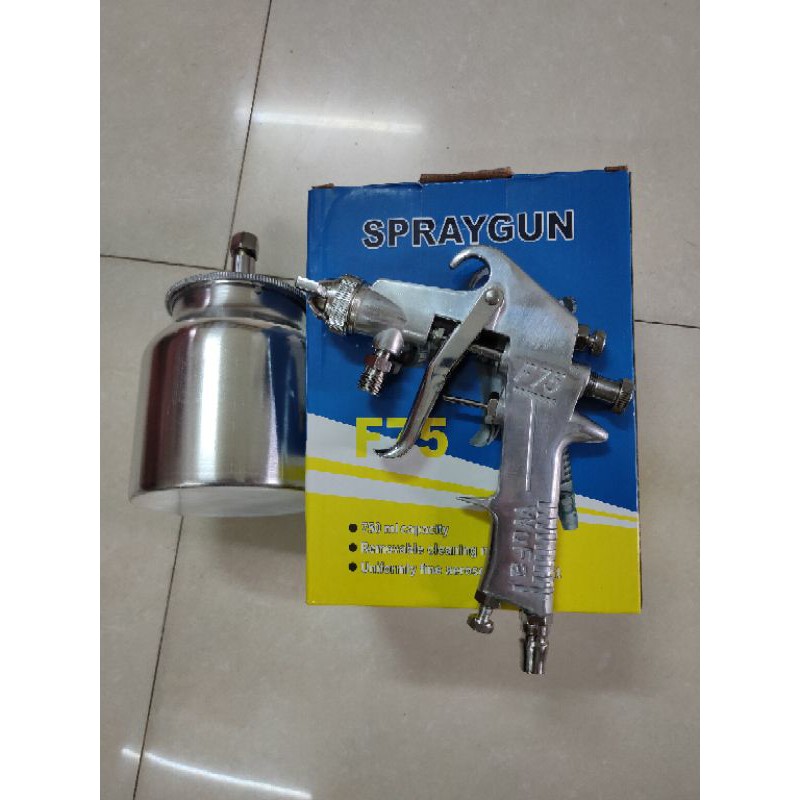 -Súng phun sơn F75-bầu dưới dùng phun sơn dầu, phun keo .Sơn phủ các loại hóa chất lên vật liệu.-Sản phẩm bầu dưới cho quý khách đựng nhiều Sơn hơn khi sử dụng