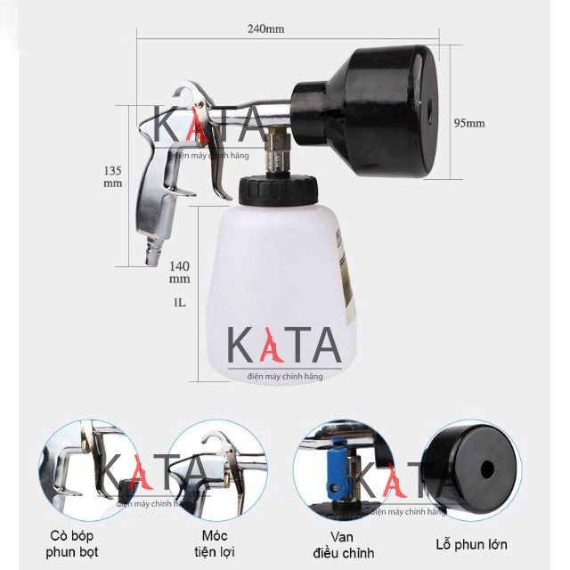 Ngày nay, khi công nghệ rửa xe bọt tuyết đang dần trở nên phổ biến, việc trang bị những dụng cụ, hỗ trợ là không thể thiếu, và bình tạo bọt tuyết cầm tay dùng khí nén cho máy nén khí, máy hơi với mức giá hợp lý. Chúng tôi xin giới thiệu một loại loại súng rửa xe giá rẻ kèm bình tạo bọt tuyết Đài Loan.SÚNG PHUN TẠO BỌT TUYẾT + BÌNH 1 LÍT ĐỂ RỬA XE ĐÀI LOAN