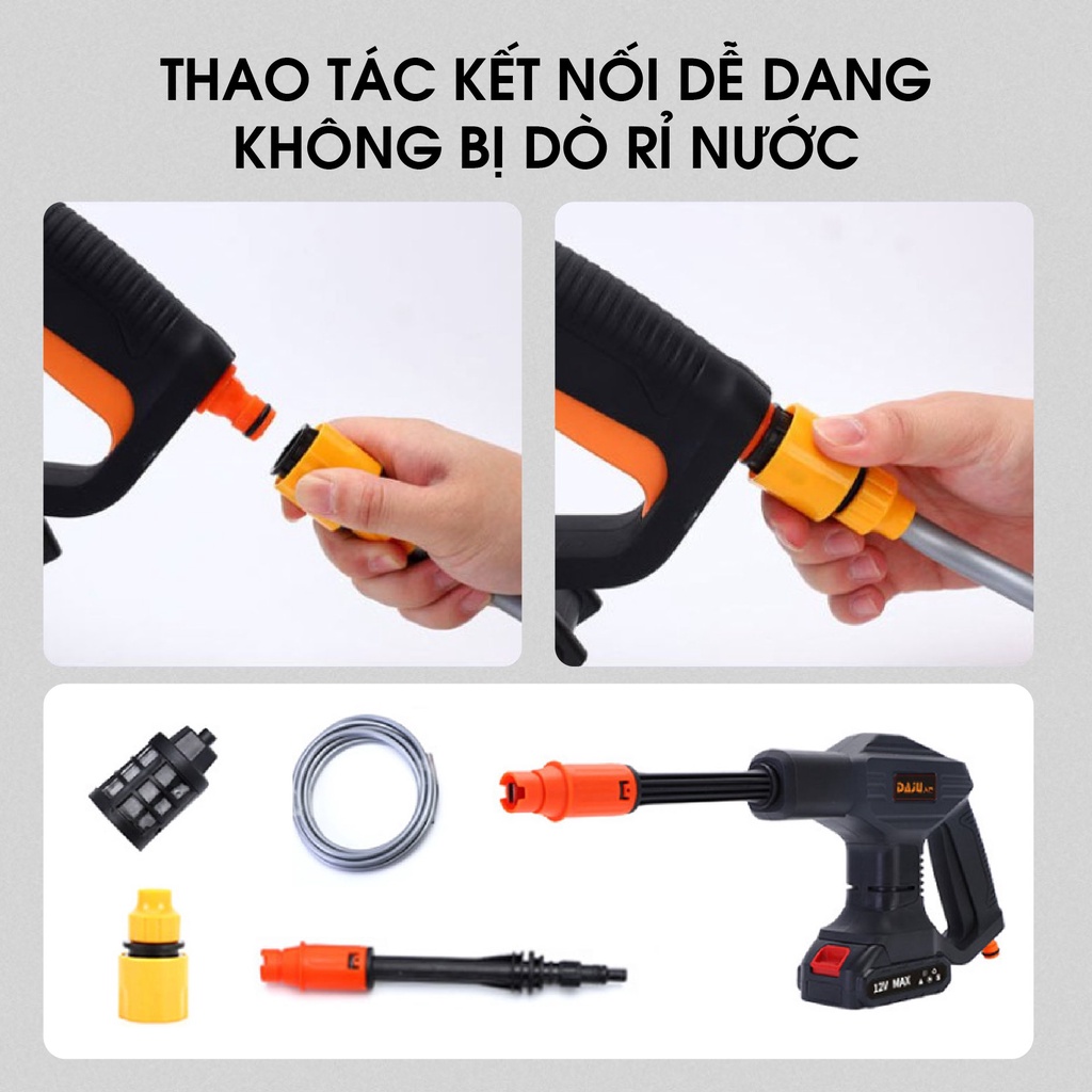SÚNG RỬA XE ÁP LỰC CAO KHÔNG DÂY pin Lithium 24V, súng rửa xe mini gia đình tiện dụng, ống nối dài, phun xịt cực mạnh