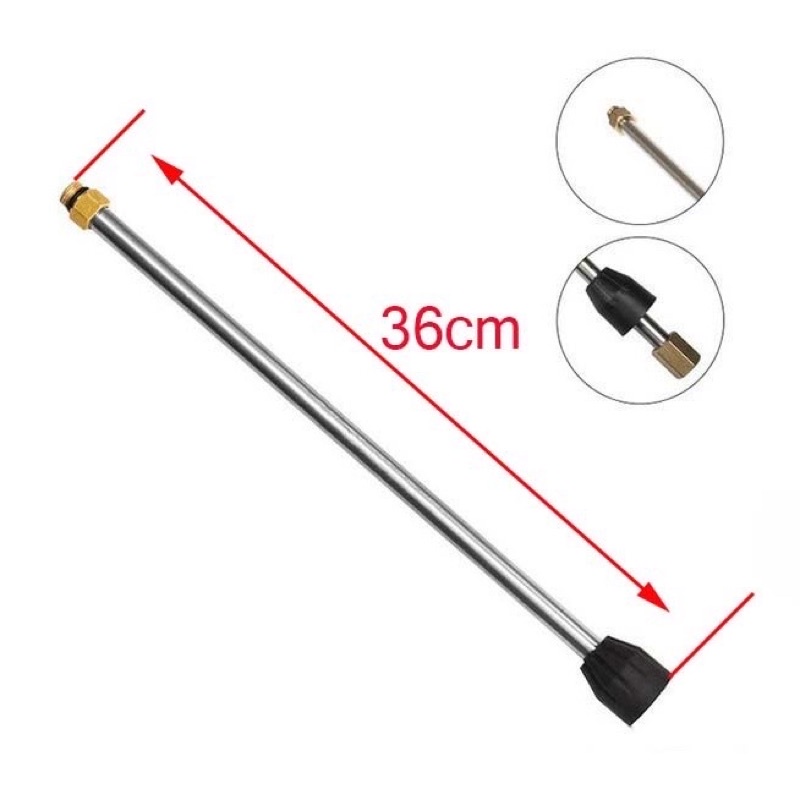 - Ống nối dài có chiều dài lên tới 36cm giúp bạn dễ dàng luôn sâu vào các vị trí khó với tới & tạo 1 khoảng cách nhất định giữa người sử dụng máy bơm xịt rửa xe với vật cần rửa để tránh bắn nước & đảm bảo an toàn hơn.