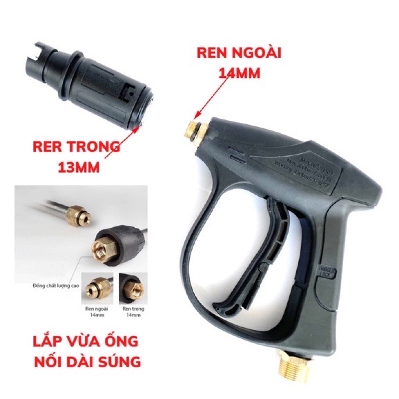 Súng rửa xe áp lực cao ren ngoài 14mm và 22mm kèm ống nối dài 36cm