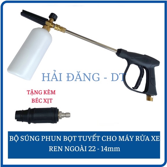 Bộ súng rửa xe áp lực cao và Bình xịt bọt tuyết 1L cao cấp, Kèm ống nối dài 36cm (Ren súng 22-14mm)