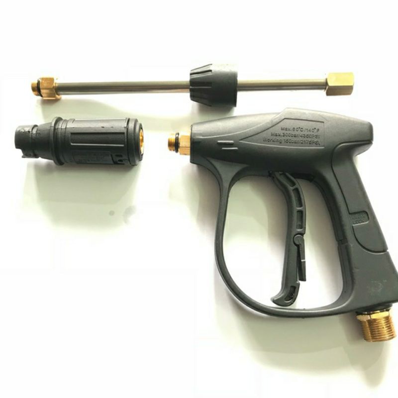 Súng rửa xe áp lực có thân nối dài - Có thể tháo lắp súng dài hay ngắn tùy thích - Hàng chính hãng theo máy rửa xe áp lực ERGEN 6708 - 2300W - Lắp chung cho tất cả các loại dây rửa xe áp lực có ren phi 22 - Súng rửa xe áp lực ren ngoài : Phi 22 - Đầu súng có thể điều chỉnh mức nước to nhỏ phù hợp với nhiều công việc khác nhau