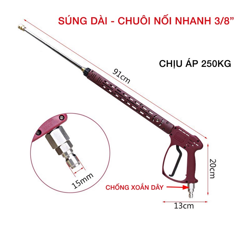 Giới thiệu SUNG RUA XE cao áp - lõi sứ - áp 250Kg - chống xoắn dây