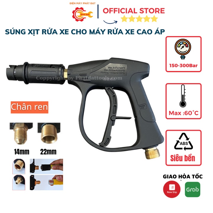 📌HƯỚNG DẪN: Hiện nay trên thị trường có hai loại súng rửa xe với chân ren kết nối với dây rửa xe là ren 14mm(nhỏ) và ren 22mm(to).Cho nên khi mua hàng quý khách phải xem súng cũ hoặc dây rửa xe của máy rửa xe nhà mình là chân ren to hay nhỏ để tránh mua nhầm về không lắp được