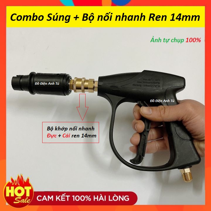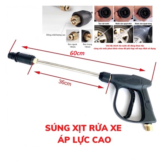 Súng rửa xe áp lực cao + bộ nối nhanh ren 1/4 loại tốt chống trờn ren béc súng tháo lắp nhanh gọnThông tin sản phẩm súng: