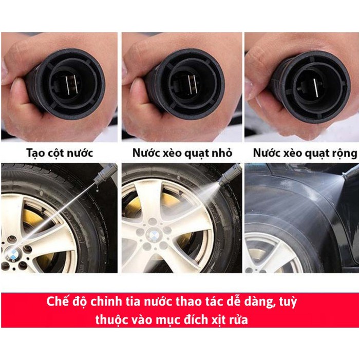 Đầu phun có thể điều chỉnh độ rộng hẹp sao cho phù hợp với các vị trí khác nhau khi sử dụng và tháo lắp thay các đầu nối khác để phù hợp công việc