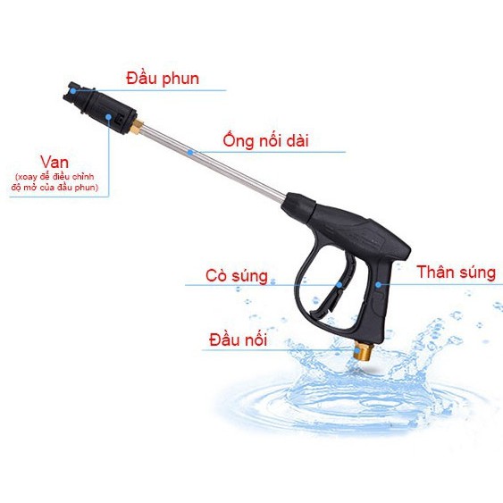 Giới thiệu Súng rửa xe, Súng xịt rửa xe áp lực cao (ren 22mm Và 14mm kèm ống nối dài 36cm)