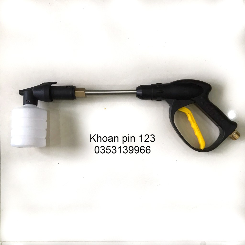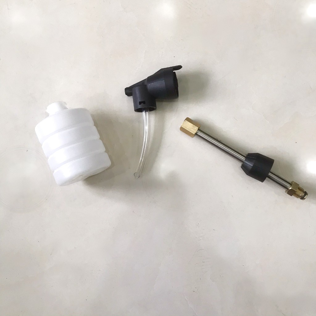 Súng rửa xe tăng áp, cán nối inox và bình phun bọt tuyết