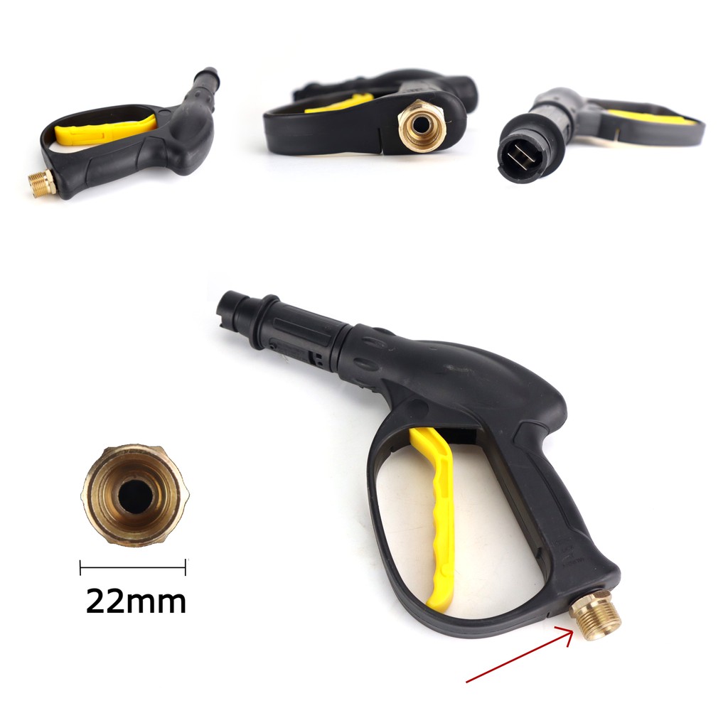 Súng rửa xe dùng cho máy rửa xe cao áp, súng rửa xe được làm bằng chất liệu nhựa ABS siêu bền, cầm chắc tay.Sản phẩm với đầu ren đồng cầm chắc chắn sịt tia nước tập chung tạo ra áp lực cao tiện cho việc sịt rửa nhanh hơn so với súng khác.