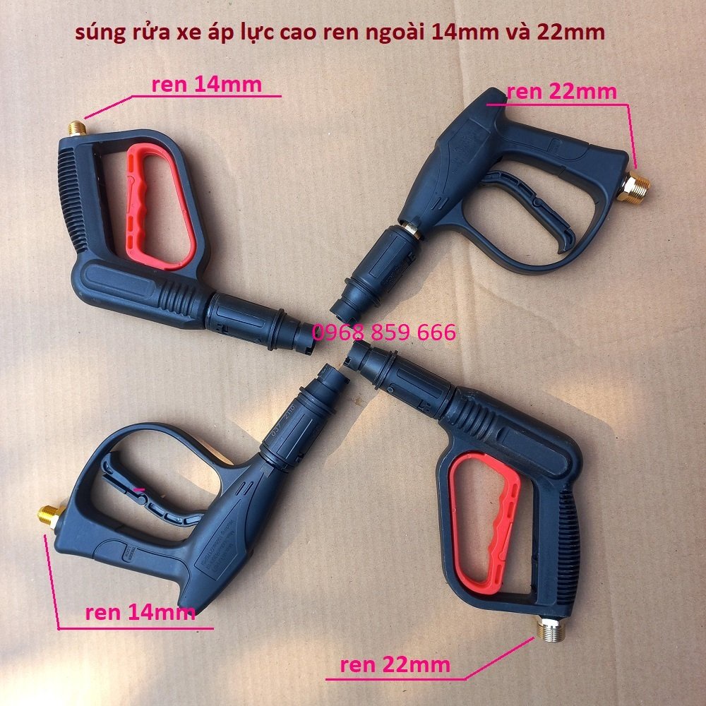 Súng rửa xe tăng áp, súng xịt áp xuất cao lắp máy rửa xe loại 22mm và 14mm các loại