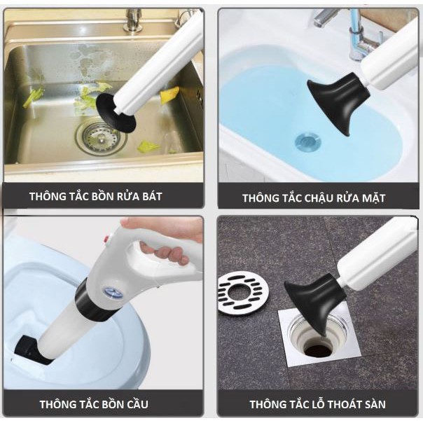 +Dụng cụ thông bồn cầu bằng hơi khí nén đi kèm nhiều phụ kiện