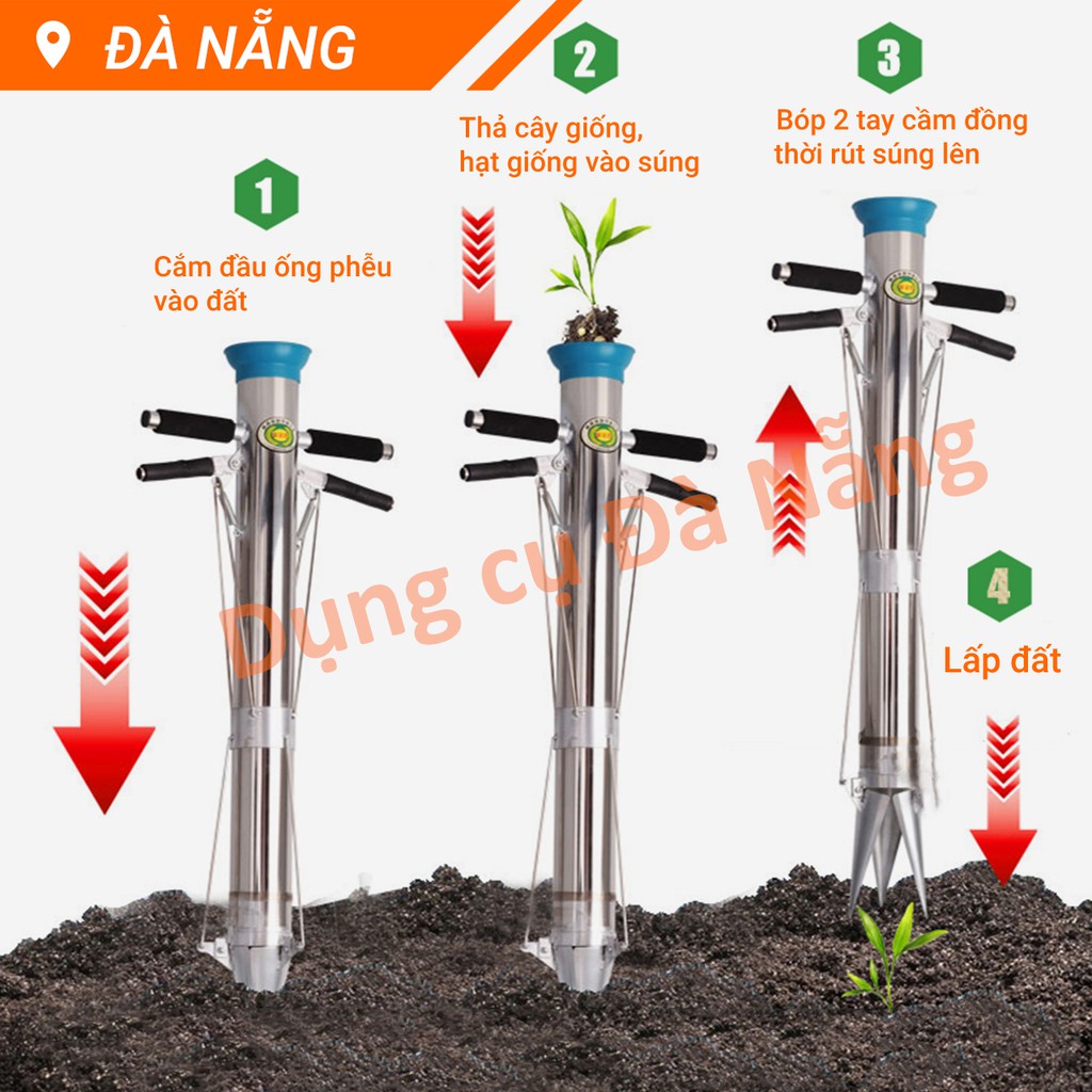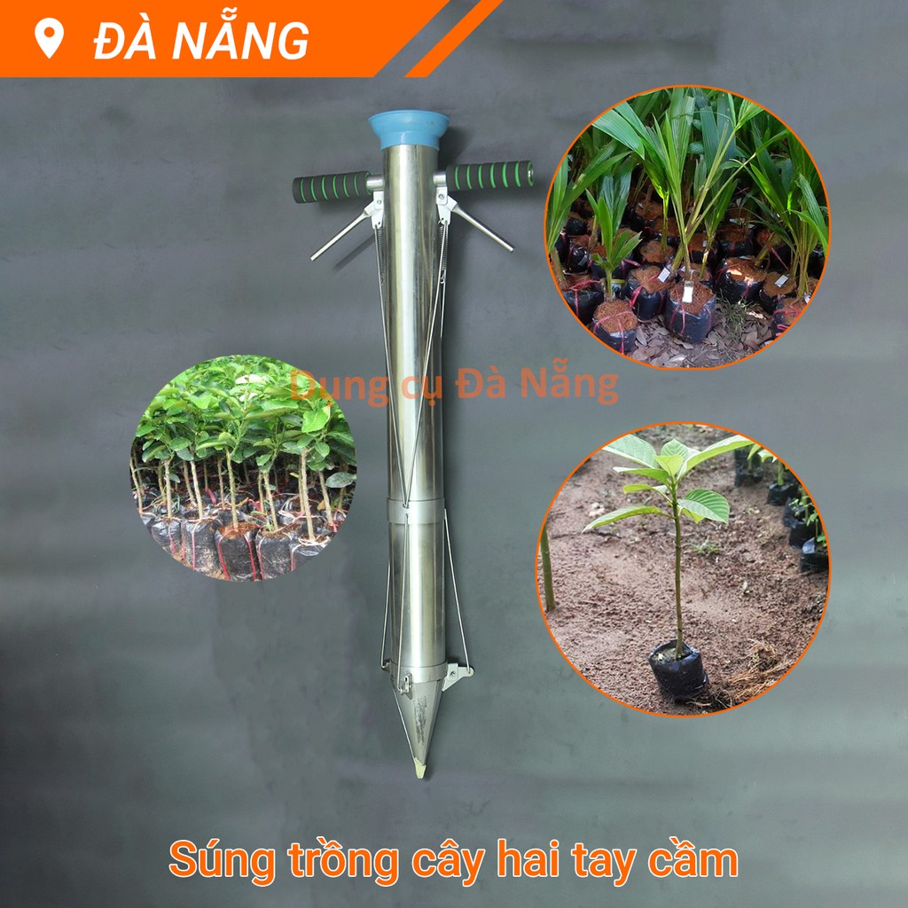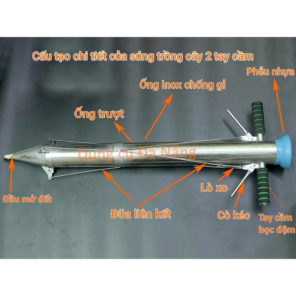 Súng trông cây 2 tay cầm là dụng cụ trồng cây con , gieo hạt giúp chúng ta gieo trồng một cách nhanh chóng và hiệu quả.Súng trồng cây 1 tay cầm giúp giảm sức lao động tối đa, được làm tư inox chống gỉ, rất sáng và chắc chăn .Có thể gieo trồng được nhiều loại cây giống,hạt mầm : hạt đỗ, hạt ngộ, thóc,cà chua...